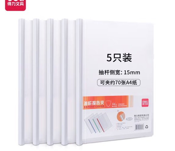 得力 deli 得力抽桿夾 文件夾A4拉桿夾資料夾 (白) 1包裝5個(gè)5532